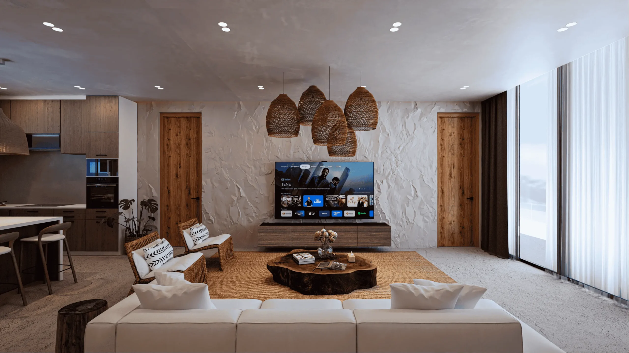 features well-thought-out open-plan living spaces,