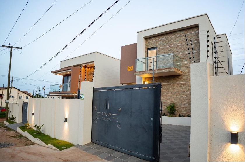 Locus Vista sits on a 50x70 plot size in a serene prime location of East Airport. Locus Vista is an ideal residential property to cater for all your needs. It is a fully furnished 3-bedroom, 3.5-bathroom with staff quarters.
